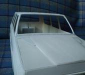 Ну тут особо ничего сложного нет именно в изготовлении таким способом, а на счет пластика если я не ошибаюсь то толщина как раз порядка 2мм,слоев пластика надо расчитывать от закругленности кузова у меня вроде 5слоев с накладками, но тут есть одно но, так как слоев много, то вес получается приличный, и что бы хоть как то избежать увелечения его я делал так, на каждую сторону я вырезал две полноценные боковины, а вот между двумя этими боковинами клеил полоски пластика именно там где планировалось его сточить, поэтому сейчас в района дверей скажем так пустота. Тем самым думаю грам 300 удалось убрать, дома конечно метод это не очень удобен, потому как когда начинаешь стачивать пластик, а стачивать придется не мало, слишком уж много летит все в разные стороны, поэтому стачивание в черновом варианте я делал в гараже на наждаке, а вот уже аккуратное выведение делал шкуркой крупной, а потом и мелкой.