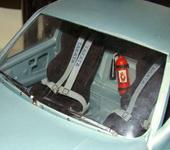 Взял резинку шириной 7мм белого цвета, покрасил в цвет кузова. Получились вот такие ремни безопасности по образцу ремней ТАКАТА.