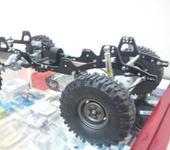 На прототипе (www.torroid.ru/images/posters/121684.jpg) видно, что и передние крылья и задние подрезаны по ширине - в месте закругления крыльев к краям. Это делается для того, чтобы увеличенные колеса не цепляли за нижнюю кромку крыльев. Колеса выходят за габариты кузова чуть более, чем на половину своей ширины. Для защиты кузова от грязи, летящей с колес, на остатки крыльев монтированы резиновые/пластиковые расширители арок.