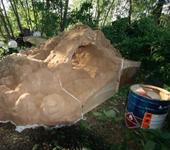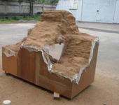 Каркас MDF, пенопласт, пена , масляная краска + марля + песок и ещё раз масляная краска + марля + песок …Думаю выдержит ! Но на всякий случай буду целофаном накрывать !
