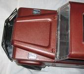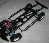 Со штатным мотором 45 витков - машина очень медленная и жужжание шестерёнок довольно-таки неестественное. Скорость - километров 5, примерно как у краулера “Базилиск” со 100-витковыми моторами, а то и меньше. Зато - “уши” не сделает в повороте, что с таким тяжёлым кузовом - запросто! Потом по желанию заказчика поставил Хаймотовский мотор от внедорожников (он крутит около 21тыс. от 6-баночного гидрида). Скорость стала в 2 раза больше, но чувствуется, что моторчику уже тяжеловато и он может долго не протянуть.