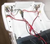 После проводки всех проводов заклеил их армированным скотчем, чтобы не болтались, сам блок - закрыт прозрачным пластиком 0.4мм (2-х сторонний скотч по краям и поверх - опять армированным). Чтобы удобно было подключать сервокабели - вывел наружу из получившегося отсека 2 коротких 15см удлиннителя для подключения к каналам руля и газа. - К сожалению, финальные фото я не сделал и потом пропустил, но это и так понятно. В случае чего скотч можно отлепить, а после ремонта - приклеить заново.