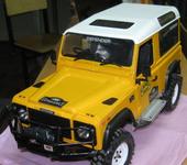 Этот 90-й Дефендер был оснащён лебёдкой от 3-Racing. Блок электроники был конечно загерметизирован, но параллельно кнопке был припаян JST-удиннитель. Кнопка на блоке управления служит для ручного включения/остановки/реверса лебёдки. Также лебёдка может управляться по 3-му каналу. Но на модели была установлена стандартная 2-х канальная аппаратура Аксиала (кстати, очень понравилась - удобный пульт и крошечный приёмник, моментально забиндилась, - очень приличная для дешёвых РТРных), поэтому управление лебёдки будет возможно только кнопкой. Выносная кнопка была вмонтирована в середину приборной панели (см. фото - жёлто-чёрная кнопка) - снаружи не бросается в глаза, но заметна когда надо, также не хотелось портить приборную панель над рулём (туда можно впоследствии сделать и приклеить “приборы”) и бардачки слева (туда ещё неудобный доступ пальцем). Однако, дотянуться до кнопки и в нашем случае непросто, но … показалось так лучше всего. Конечно кнопка соединена с ответной частью удлиннителя JST с блоком управления (разъёмы позволяют отсоединять кнопку на время съёма кузова).