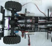 Есть ещё мысль - как можно немного улучшить рулевое управление. - Нужно поставить серву на мост, как у Аксиалла. Но стандартная серва не подойдёт - в сжатом виде остаётся пространства около 12.5мм (иначе серва упрётся в мотор), а толщина сервы 20-21мм. Нужна серва для элеронов и закрылков авиамоделей - есть такие, толщиной 10мм с моментом 7-8кг - его вполне хватит, но сервы эти не дешёвые. В перспективе - имеет смысл ставить такую серву. А на место штатной на площадку сверху - радиобокс под приёмник. - Всё будет намного удобнее.
