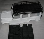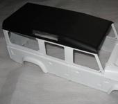 К счастью для фирмы-производителя, фоток кузова ДО покраски не сделал…😉 Кузов красил Паша (Dreik), я наводил потом мелкие детали, красил резиночки и собирал в кучу. Также я сам переделывал салон. Косяки конечно есть, присмотритесь - всё видно, но это увы, “наследство от производителя”, всё что не удалось исправить. Так что совет №1 - если хотите сделать лучше и имеете руки не из …, то лучше (и дешевле!) заказать два 90-х кузова и самому сделать им “трепанацию” и склейку. Даже если не сделаете ровнее - у вас будет 2 салона, что очень пригодится! Окраска - по желанию заказчика. Реально, если для “себя любимого” - нужно красить в нечто более ярко-контрастное, лучше всего в камуфляж. Либо что-то в стиле альпийских горнострелков, либо типа “буря в пустыне”. Тогда все мелкие неровности и косяки незаметны. Краска - матовая (копийно), не вздумайте глянец наводить - все косяки сразу выпрут. Однако, на белую матовую липнет как магнитом всякая грязь - заляпать просто с пол-пинка!. Из-за серого грунта, которым был покрыт кузов спецами RC4WD, пришлось истратить 3 (!) баллона белой краски! Ну и ещё полбаллона чёрной матовой ушло на крышу… И ещё фломастером Тамиевским порисовал резиночки + подкрасить где по-мелочи + белым фломастером спереди лобовое стекло. Лобовое стекло - караул ! - Разводы так и бликуют на свету, кривое до невозможности. Правда, с остальными стёклышками всё в-порядке.