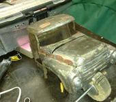кабина к сожалению оказалась сильно ржавой , после зачистки от краски и ржавчиныв ней нашлось много дыр которые я запаял 100ватным паяльником и пластинами латуни с припоем, даже после этого я неуверен что она долго проживет надеюсь летом найти еще парочку таких грузовиков и пустить их на запчасти