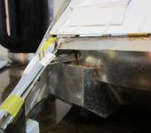 Сегодня попробовал выштамповать заднюю стенку кабины, получилось некрасиво 8). Метал замялся по краям, не до конца продавились рёбра жёсткости. Как мне кажется не хватило давления на форму, а метал замялся по краям из-за того что слишком мало я его там оставил.