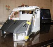 В основном да =) так как с жестью до этого не работал. Но пересмотрев большое количество фотографий по данному грузовику, сделал выводы: на оригинале капот, крыша, боковые панели на морде, и боковые панели на кабине тоже изготовлены из пластика.