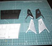 Занимаюсь дальше пластиком. Переделал боковые панели, стали смотреться лучше, первый вариант мне не понравился, да и с оригиналом мало сходства было. Так же боковые панели на морде подогнал, прихватил в нескольких местах для снятия размеров под изготовление капота. Сделал наконец то крышу правда это ещё не окончательный вариант, буду стачивать лоб крыши, слишком уж он резкий получился. В общем клею, шпаклюю, шкурю и снова шпаклюю =)