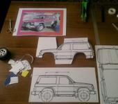 Всем привет! Приобрел тут как-то попробовать RC модель автомобиля (до этого занимался вертолетами) HPI Mini Recon, очень понравилось! Проштудировав форум, очень понравилась тема трофи, вот и захотелось что-нибудь сделать, но так как времени не очень и бюджет на данный момент не очень позволяет, решил объединить данную модель монстрика с каким-нибудь кузовом. Долго подбирал, но ничего особо не подходит, база 160 мм., а ширина по колесам при этом 174 мм. Но тут вспомнил про Nissan Patrol Y60 трехдверный, прикинул масштабы и в 1:15 как раз получается база 169 мм. Сделал выкройку кузова чтобы прикинуть, вот теперь хочу спросить совета, стоит ли затевать данный проект, я прекрасно понимаю, что не стандартный масштаб, не мосты а многорычажка, вобщем не судите строго. Пока только наброски кузова без арок, бамперов и т.д.