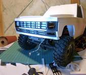 кузов делается из мягкого ПВХ толщиной 2 и 1мм. как писано выше, кузов был задуман как экспериментальный макет, в основном, для тестов, как поведет себя мягкий ПВХ при жестких ушах, поэтому изначально стекла предполагались а-ля Паджеро от Тамии, то есть тупо пластик, закрашенный черным. не знаю, что сподвигло в самый последний момент вырезать окна дверей, но теперь решено “остеклить” лобовое и боковые окна лексаном 1мм. салон пока планируется - в той степени, в которой позволит стандартное расположение агрегатов шаськи. какая будет морда - 160 или 260 - пока не решил, сам склоняюсь к последней.