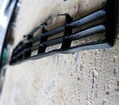 также полнится мусором и свалка за гаражом. первая решетка уже после установки на место потребовала небольшой гибки-подгонки. результат подхода “ну давай, грейся быстрее” (разорванная верхняя часть - отрезание по неплотному шву циакрина):