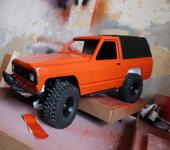 вспомнив про недавно проведенную пластическую операцию, примерил штатный бампер Хончи. раньше он мешал кузову, теперь, когда кузов сместился чуть назад относительно шаськи, бампер встал, на мой взгляд, “как тут и росло”. пускай пока там и остается, тем более, что проект готовится, в первую очередь, для трофи.