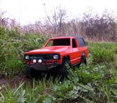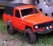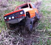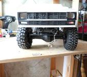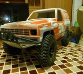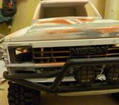 вспомнив про недавно проведенную пластическую операцию, примерил штатный бампер Хончи. раньше он мешал кузову, теперь, когда кузов сместился чуть назад относительно шаськи, бампер встал, на мой взгляд, “как тут и росло”. пускай пока там и остается, тем более, что проект готовится, в первую очередь, для трофи.