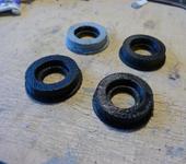 пришли два комплекта дисков и один - шин. был неприятно удивлен качеством дисков от известного всем производителя колес (в чем лишний раз убедился), названных в прошлом посте правильными для данного проекта. при ценнике в 60 долларов за комплект штампованную железяку можно было бы и порошком покрасить, а не просто из баллона (причем, внутренние поверхности штамповки покрашены в один слой). продукция rc4wd для меня все больше и больше становится похожей на продукцию автоТАЗа - идея неплохая, но исполнение… пластиковые диски от GMade выглядят богаче рядом с этими. ну да ладно.