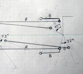 Случай 2 - сошки позади моста: При повороте правой сошки на 37° (45 не получится - не хватит длины тяги, а ловить градусы, чтобы сошка и тяга встали на одну линию я не стал), левая сошка опять-же через тягу сделает уже все 53°.