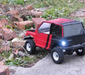 Приклеил стёкла, оптику(тонировка по ГОСТу естесно). Поставил свет, сделал скрытое крепление кузова как у краулеров (использовал родные стойки):