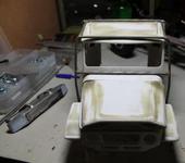 Еще немного продвинулся. Склеил кузов, скоро буду красить, подрезал арки и перенес крылья, хочу опустить кабину максимально низко. Колеса решил ставить в пределах 95-100 мм, не больше. Спаял каркас - 4 мм электрод, и бампер (баллон из под лака для волос и электрод).