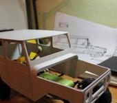 Спасибо за советы. Сегодня поработал над кузовом немного, сделал нижнюю часть крыши, зашкурил боковинки, загнул задние части и склеил все.
