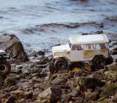 Впервые с момента покупки выехал на улицу, наконец то есть с кем покататься. Проходимостью остался доволен, несмотря на небольшие и очень жесткие шины едет уверенно, плюс защита на мостах сильно уменьшила клиренс (снял ее). Из-за узких мостов склонен к опрокидыванию. Решил изменить кузов после покатушек, как мне показалось, он выглядит громоздким, как автобус, и центр тяжести высоко, поэтому принято решение переделать в пикап, будет интереснее выглядеть, и полегче.
