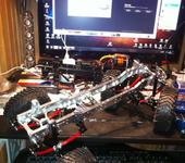 Была найдена рама JunFac, поперечины от Hot Racing, мосты от Ballictic Fabrication, крепление рессор от Hot Racing, амортизаторы от RC4WD.