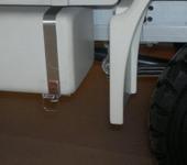 На днище аккумуляторного отсека из жести сделал кронштейны крепления и алюминиевыми хомутами стянул конструкцию.
