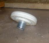 Крышку фильтра сделал из пластика, который обточил с помощью дреля, соорудив импровизированный токарный станок. Пластиковую заготовку просверлил и в отверстие вставил винт М3 и затянул гайкой. А дальше дрелем и скрабером выводил требуемые формы.
