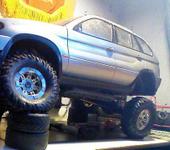 И так , был с любезностью Серегой бутово предоставлен кузов в масштабе 1:8 , за, что огромное спасибо ! Так же была взята рама от scx -10 ну и началась постройка. И так на данный момент днище от игрушки было подогнано под шась и надето для проверки. По электронике еще пока ничего нет. Все будет закупатся.