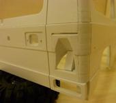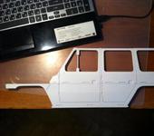 по поводу “круглых” углов и других хитровыгнутых элементов надо дать небольшое пояснение. дело в том, что предыдущие детали делались из 2.2 мм пластика, купленного на строительном рынке, который гнулся не особо. при нагреве он или не гнулся (недостаточно, видимо, нагревался) или мгновенно шел волнами (перегрев, очевидно). при покупке нормального пластика (из которого и сделан данный кузов) выяснилось, что гнется он замечательно. к сожалению, поздно выяснилось. поэтому углы и ниша топливной горловины сделаны так, как сделаны - набраны из порезанного пластика 8мм. в будущем, конечно, все будет исправлено и будет использоваться исключительно гибка.