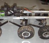 Там было всё просто - удлинил раму, сделал проходной мост, установил короткий кардан с rc4wd.