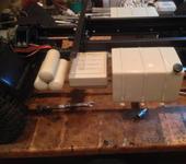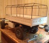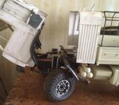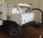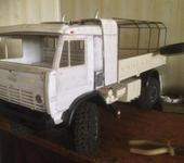 После длительного перерыва выкладываю небольшое продвижение.Постройка хоть и медленно, но движется. В результате, в основном ночных работ, кабина практически готова.Теперь грунтовка и шкурить,шкурить … Выводить все мелкие косяки.Крыша и передняя панель пока не приклеены,так как надо загрунтовать и делать кабину внутри. Камаз начинает приобретать узнаваемые черты. Ну и погонял немного шаську,чтобы выявит слабые места. Пока только карданы подводят, слабоваты для такого веса.Зато радует силовая установка. На первой передаче “черепашья” скорость(около 3км/ч) и огромная тяга, на второй около 10 км/ч( по расчету).