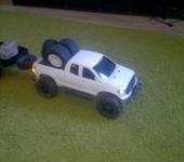 Увлечение и вправду заразное.Тут подвернулся кусочек детской игрушки.Нашлись два кусочка алюмминевой трубки.Решил примерится.Пониже повыше ?Шире сделать мост или оставить родной,около 17 см. с колёсами? В общем подойдёт такой прицепчик к данному авто.