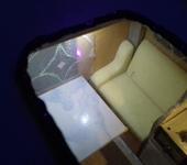 Хоть и не трофи прицеп, но все же прицеп. Внутри как и положено: разная мебель, кухня, сан.узел, кровать. У каждой зоны своя подсветка, а также внешний свет и габариты.
