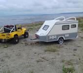 Вот мой вариант прицепа. Рама металл, кузов ПВХ 3мм, мост от тамии с вынутым дифом. Задний борт откидной. Колёса от китайского гелика.