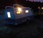 Хоть и не трофи прицеп, но все же прицеп. Внутри как и положено: разная мебель, кухня, сан.узел, кровать. У каждой зоны своя подсветка, а также внешний свет и габариты.