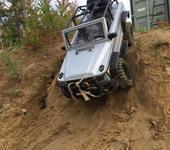 Где машинка показала себя идеально, так это на переменном профиле, артикуляция отменная хотя я перенастроил аморты на меньший лифт. Очень хорошо ехала по скользким косогорам и там где надо было вынуждено останавливаться на подъеме. Машинка не катится сама вообще пока на газ не нажмешь-очень удобно. Все грязевые участки брала с легкостью.