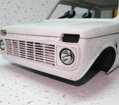 Решетка радиатора съемная и крепится как на 1\1. После установки решетки радиатора и оптики, модель прям на ниву стала похожа)))
