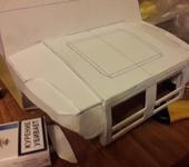 Вобщем лебедку сделал из болванки и сервы, сама серва крепится под корпусом, возникли проблемы в ее подключении, т.к. аппа имеет 3 канал только 2 позиционный. Поэтому сделал на капоте выключатель, а третьим каналом туда-сюда мотаю. сделал люк на крыше, так как одной рукой через заднюю дверь залазить не удобно, а выключатели будут располагаться на торпеде.