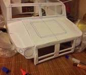 Вобщем лебедку сделал из болванки и сервы, сама серва крепится под корпусом, возникли проблемы в ее подключении, т.к. аппа имеет 3 канал только 2 позиционный. Поэтому сделал на капоте выключатель, а третьим каналом туда-сюда мотаю. сделал люк на крыше, так как одной рукой через заднюю дверь залазить не удобно, а выключатели будут располагаться на торпеде.