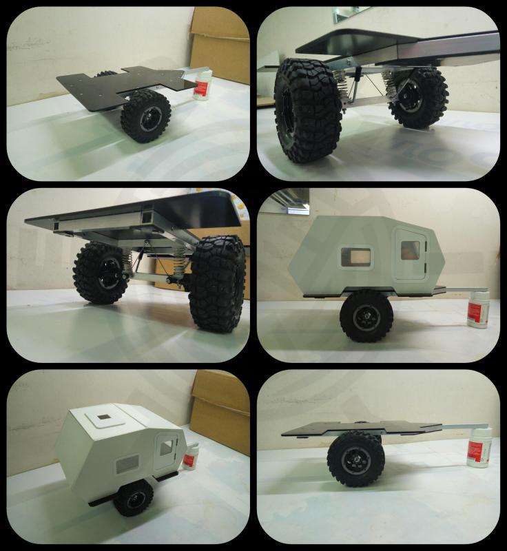 И вот, я добрался до основной цели этого поста! Сама коробка нового прицепа вполне копийно-масштабная, но установленная на шась которую геометрически можно прицепить к стоковому Аксу(то есть, дышло прицепа горизонтально и сцепное устройство находится в районе бампера) рушит всю копийность! От земли до столешницы кухни получается около 150мм. Хиксу( рост 180мм) по грудь! Незадача…