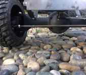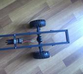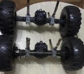 Приобрели колеса, протектор как у оригинала (правда наружный диаметр немного меньше, чем нужно). После установки их на наши мосты, оказалось, что колея стала шире из-за вылета дисков… По этому решили ПОКА поставить другие мосты (до тех пор пока не подберём подходящие диски)… Сделали рессоры из шпателя, крепление рессор к мостам и к раме.