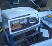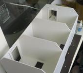 Про кабину отдельная история… Хотели сделать все быстро на 3D принтере по модели (оказалась ОЧЕНЬ КРИВОЙ, но сразу как-то не заметили, да объём работ по доработке не казался таким уж и очень большим…). На деле после распечатки оказалось, что доработки требует каждая деталь, а некоторые пришлось делать заново из вспененного ПВХ… Крышу повело ОЧЕНЬ сильно когда обрабатывали ацетоном (её делали заново)