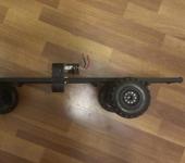Приобрели колеса, протектор как у оригинала (правда наружный диаметр немного меньше, чем нужно). После установки их на наши мосты, оказалось, что колея стала шире из-за вылета дисков… По этому решили ПОКА поставить другие мосты (до тех пор пока не подберём подходящие диски)… Сделали рессоры из шпателя, крепление рессор к мостам и к раме.