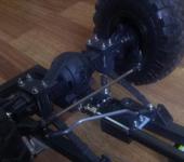 попробуй развернуть кулаки сошками назад и переставить межколесную рулевую за мостом, соответственно и серву за мостом, так рулиться значительно лучше будет, и тяга от сервы очень уж страшно узогнута, гулять будет, лучше максимально низко поставить серву что бы изгибы были минимальны, либо тягу из чугуна ковать:)