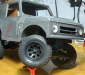 Под задние аморты немного паяльником проплавил углубления, если присмотреться по прошлым фоткам там видны квадратики проплавленые, но можно и отверстия сделать. Запаску обмотал упаковочным белым паролоном чтоб размер примерно совпадал с размером колёс, а сверху одевается чехол от Yeah Racing