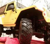 По сравнению с аксом конечно меньше колеса и ходы подвески, но зато работающие в стоке аморты и хороший выворот. Резина дик цепек 100мм ( клон), отлично едет, кое где даже лучше рипсов.