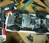 колесная база будет под тамиевскй кузов паджерика, что бы можно было менять кузова. Вот, что уже сделано. Рулевую буду переделывать на рулевую рейку.