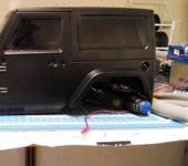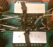 Я не хотел чтобы крепления кузова были видны, поэтому кузов прикреплял к раме 4 винтиками, на эту процедуру у меня обычно уходило до 2 минут - винтики находятся в труднодоступных местах и часто выпадают из моих рук-крюк. Надоело мучиться и сзади вместо винтиков я использовал шпильки на которые накручиваю концевик. А спереди вместо отверстия сделал паз. Теперь нужно спереди попасть в пазы, попасть задними отверстиями на шпильки и накрутить два концевика. Уходит на это 15 секунд, пока был лексановый кузов я с клипсами дольше возился.