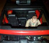 Майор Датч не влезал в водительское кресло и его приходилось сажать без обуви:), то есть отрывать самые нижние суставы. Дети без конца его сажают и вытаскивают и мне надоело возиться с пристегиванием- отрыванием ног. Сначала хотел прорезать в кузове дырку для ног, но потом решил сделать “копийнее”😃 и отодвинуть сидение подальше.