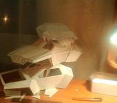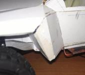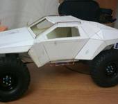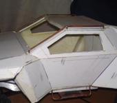 Сначала сделал две бумажные модели: 1-чтобы понять как устроен кузов,т.к. много геометрических изломов. 2-ой кузов попробовал подогнать под 10й масштаб. Когда все получилось, начал делать из ПВХ 2мм. Но получилось местами кривовато) Поэтому, 4-й кузов начал делать с распорками и пытаясь сохранить геометрию.